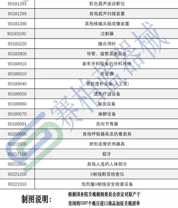 從國(guó)務(wù)院發(fā)布的公告來看,公告中提到的600億美元商品清單時(shí)發(fā)現(xiàn),涉及醫(yī)療器械的產(chǎn)品不僅有大型醫(yī)用設(shè)備儀器,同時(shí)也包括耗材和試劑。
