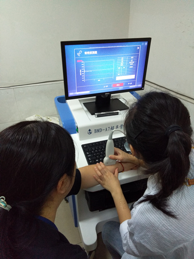 超聲骨密度測量系統(tǒng)是超聲診斷學(xué)范疇中的一項專門技術(shù), 主要利用骨質(zhì)對超聲衰減度和聲速的變化來進(jìn)行無創(chuàng)、無損、無輻射檢測人體骨密度、骨強(qiáng)度等生理學(xué)參數(shù), 對兒童生理發(fā)育,成人骨損、骨折風(fēng)險的預(yù)防有很大的參考價值和指導(dǎo)價值, 為骨質(zhì)疏松疾病提供一種先進(jìn)的診斷手段。該法操作簡便、安全無害、價格便宜、所用的儀器為兒童骨密度儀,和做B超一樣抹一點耦合劑,之后就有一個手柄式探頭對準(zhǔn)骨頭部位進(jìn)行掃描即可,大約需要3到5分鐘。