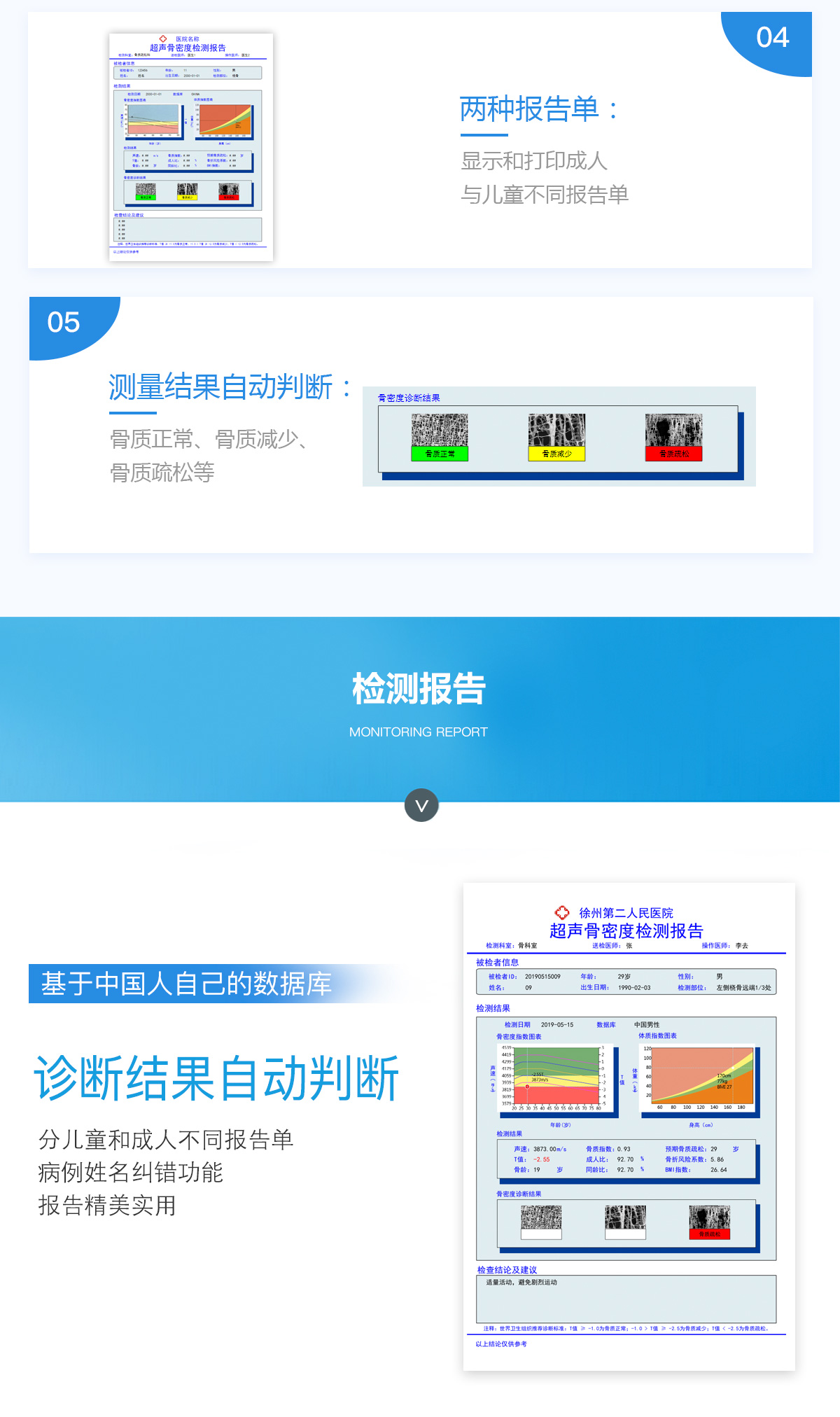 ■ 軟件優(yōu)勢::BMD-A系列超聲骨密度檢測儀一臺儀器裝配有智能分析系統(tǒng),經(jīng)濟(jì)實用??蓽y量0-100歲人群。