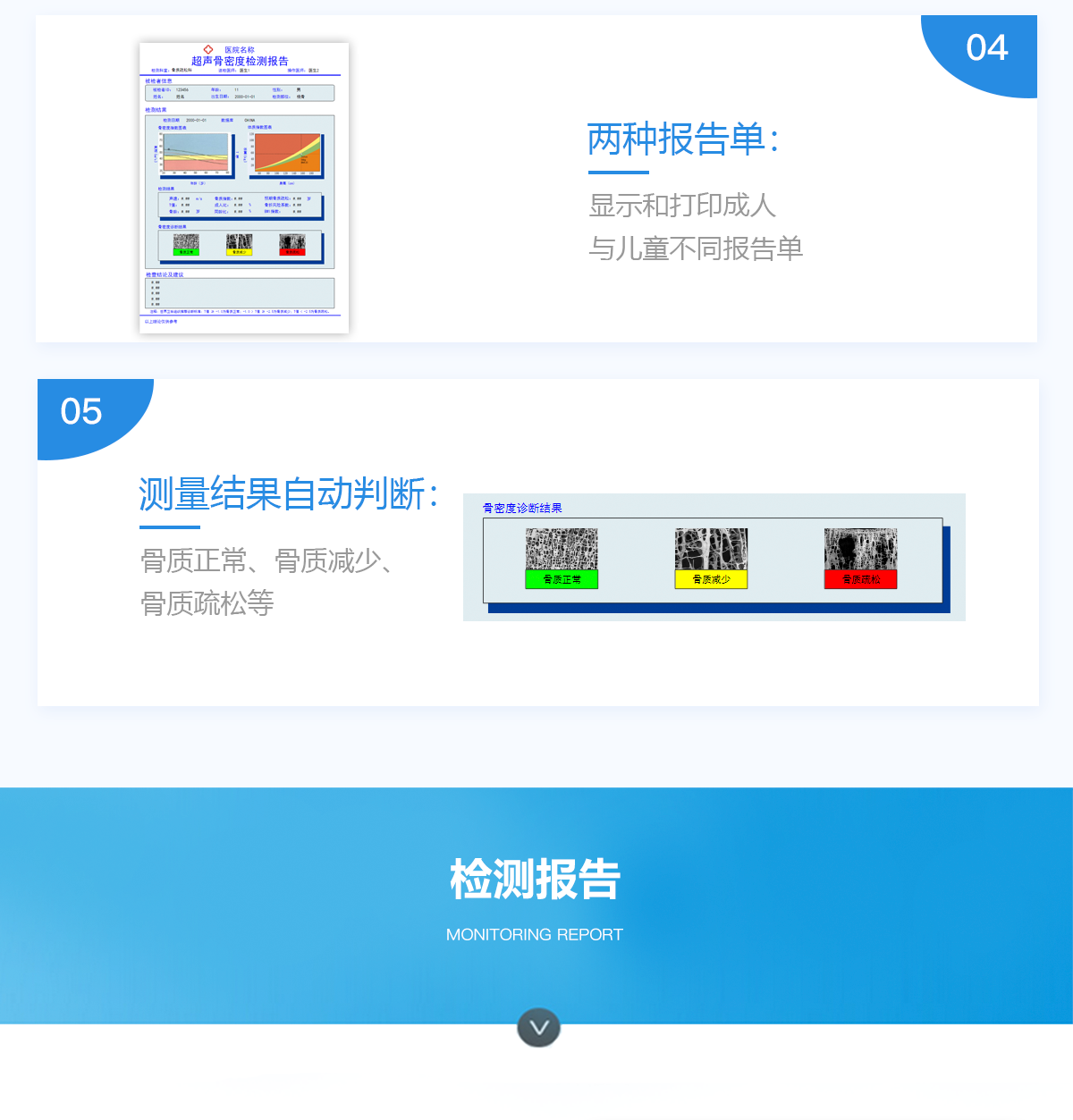 產(chǎn)品在醫(yī)生指導(dǎo)下,適用于受試者橈骨、脛骨骨密度或骨強(qiáng)度進(jìn)行檢驗(yàn)。